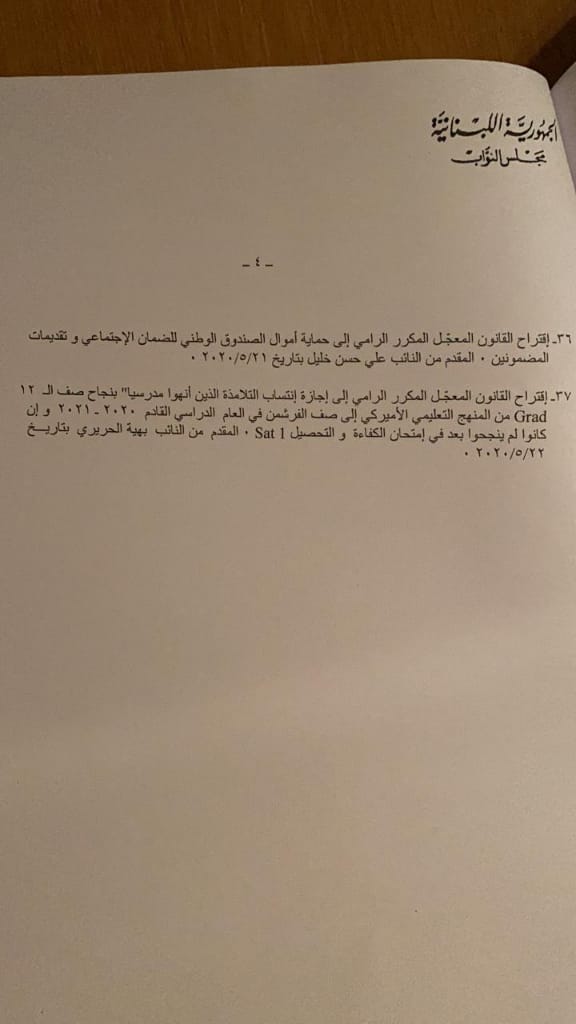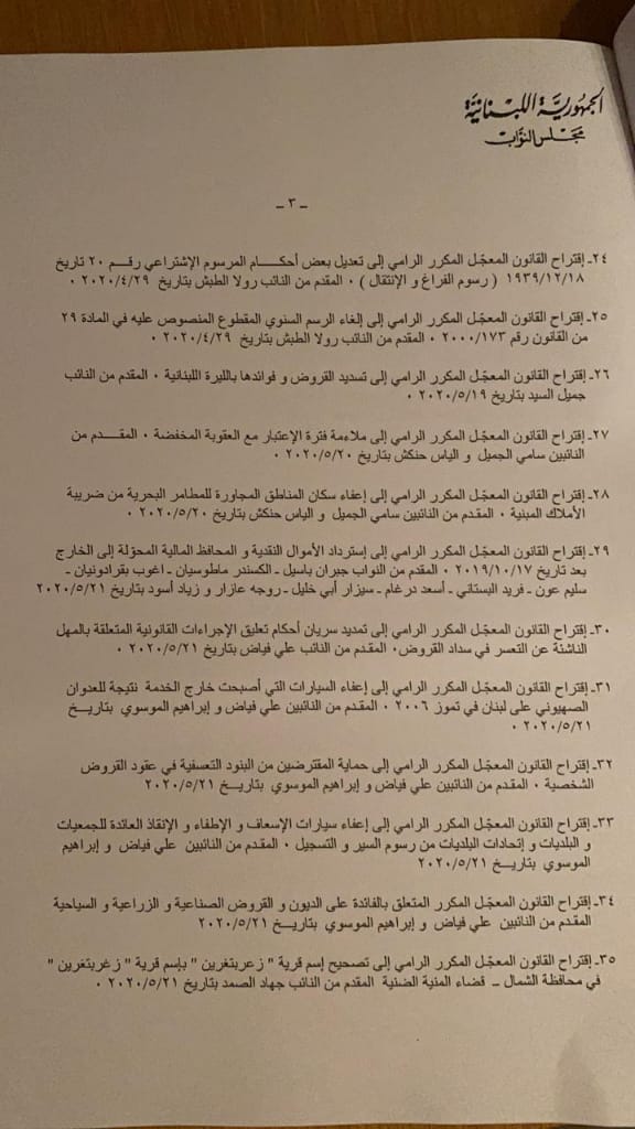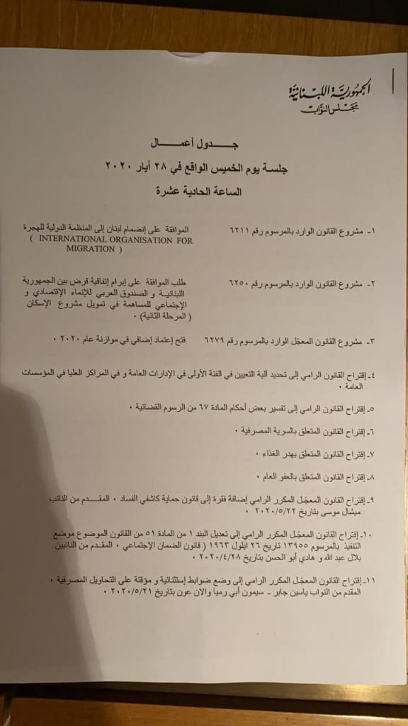 إليكم جدول اعمال الجلسة المؤلف من 37 اقتراح قانون