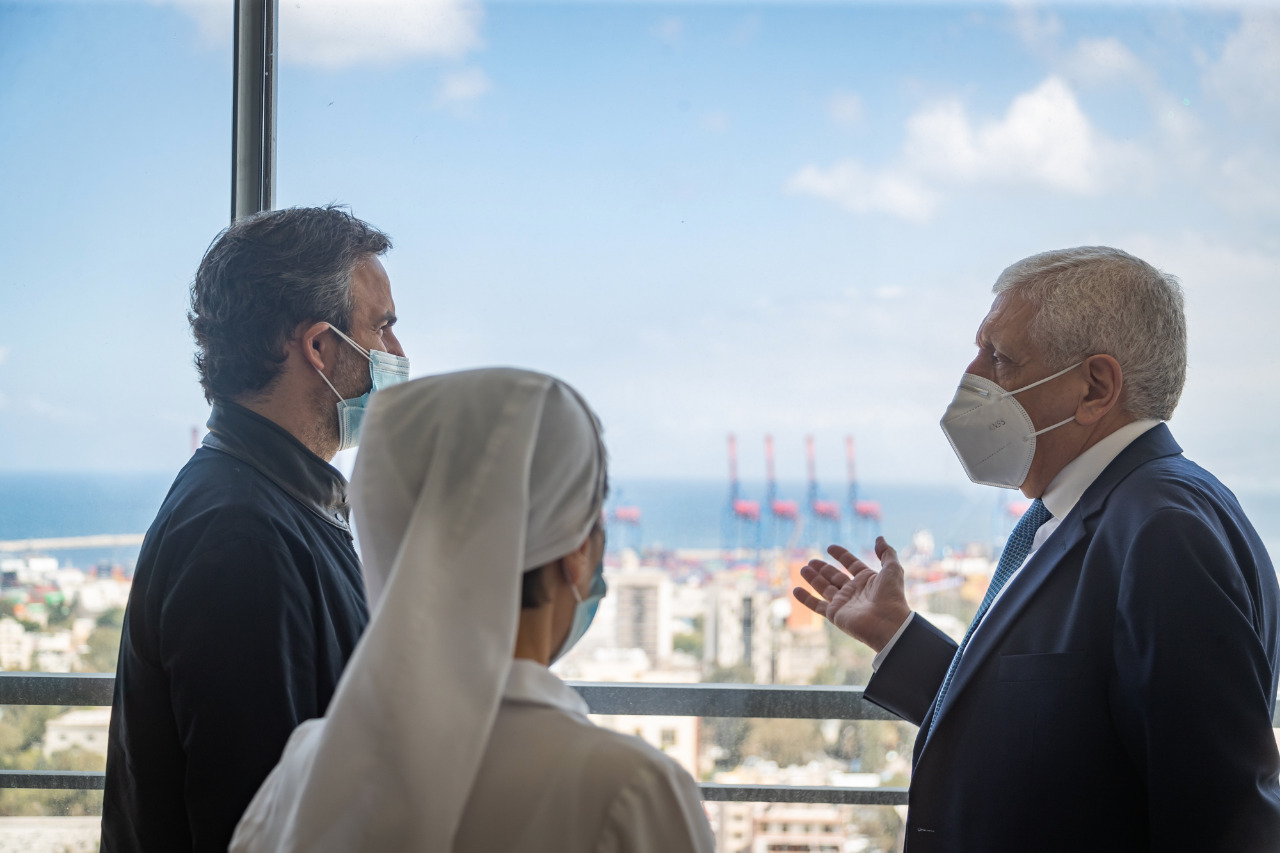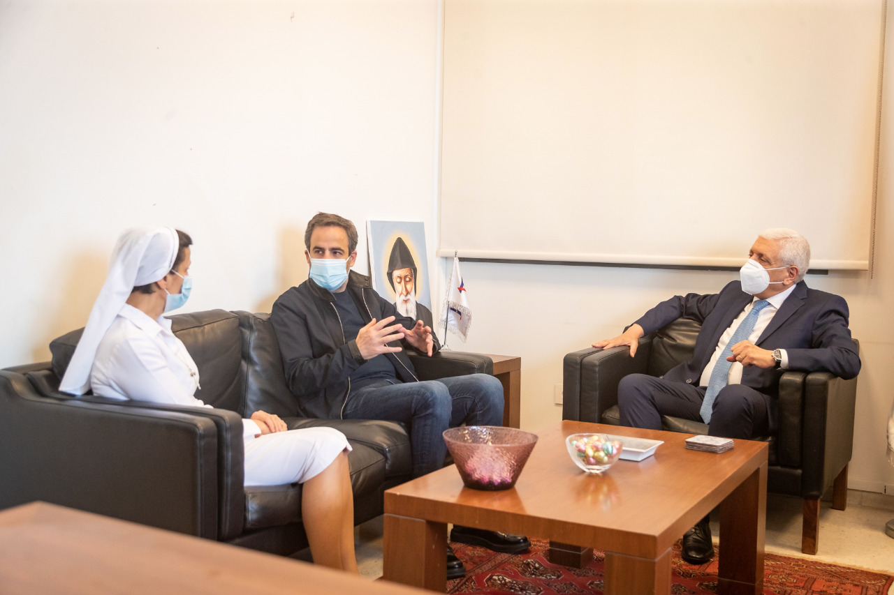 وفي هذا الإطار، جال وفد من مؤسسة رينه معوض على المستشفى يرأسه الرئيس التنفيذي للمؤسسة ميشال معوض، للاطلاع على بدء أعمال إعادة التأهيل التي تشمل قسم العناية الفائقة بأقسامه الثلاثة، حيث التقى بالمدير العام الدكتور بيار يارد والأخت هاديا أبي شبلي.