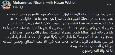 بهذه العبارة رثى أحد أصدقاء حسن رحيله عن الدنيا..